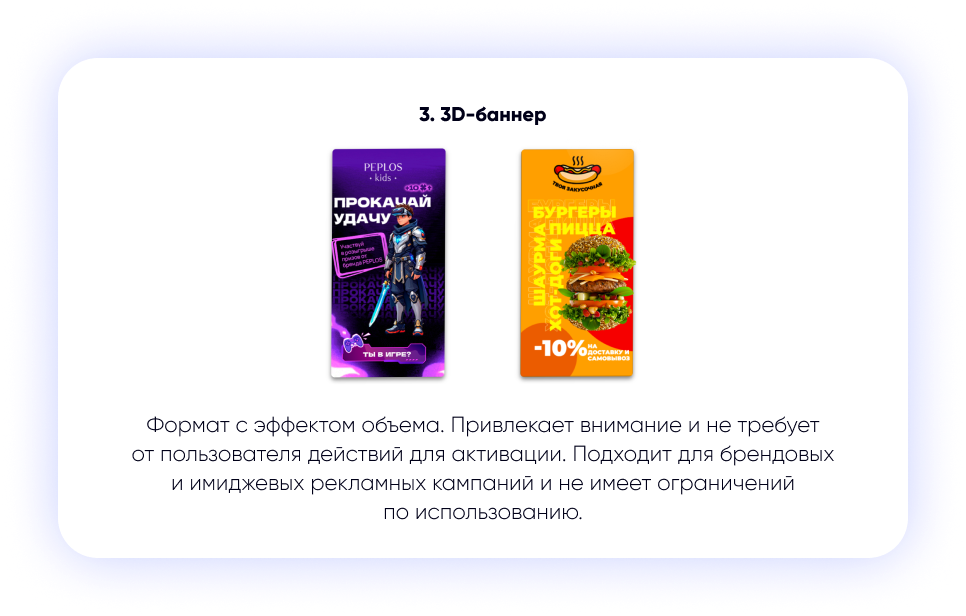 - Максимальный охват и видимость, поскольку эти форматы привлекают и удерживают внимание пользователя дольше.