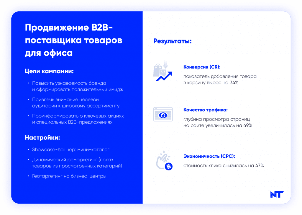 Наш анализ показал, что использование таких форматов, как Showcase-баннер (для имиджевой демонстрации широкого ассортимента) и Slider Banner (для последовательного сторителлинга и ознакомления с продуктом), обеспечивает предсказуемый рост ключевых медийных метрик: